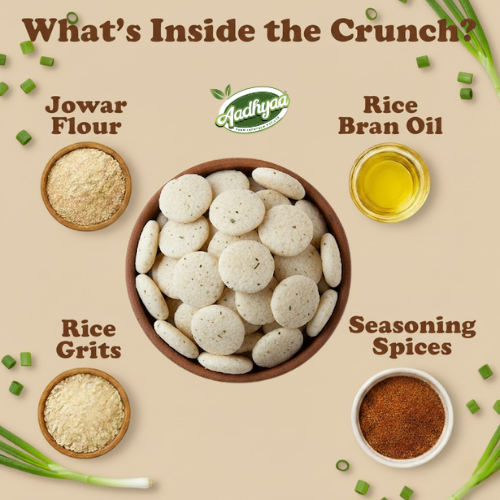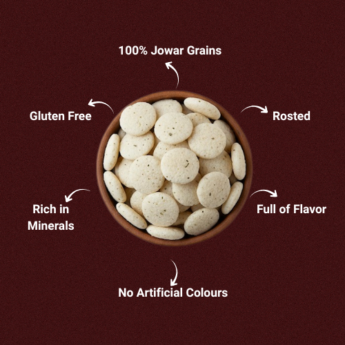 A light, airy and flavourful snack made from wholesome jowar. Enjoy a balanced taste with a clean, guilt-free crunch. Perfect for daily snacking, tea-time or on-the-go.